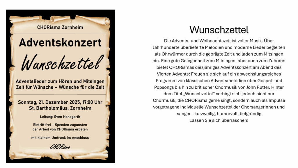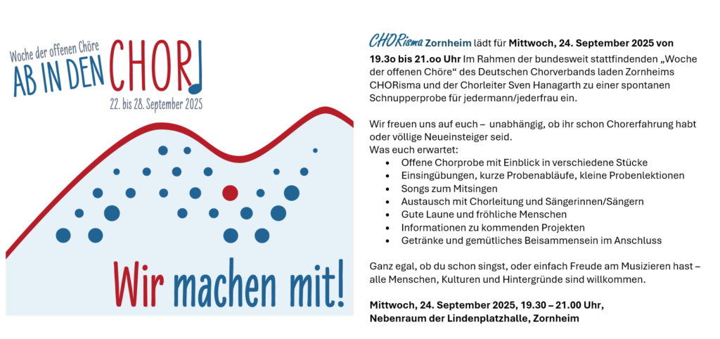 Seit dem 20.07.2022 gibt es den Förderverein CHORisma Zornheim.